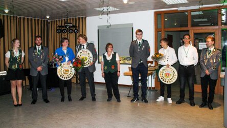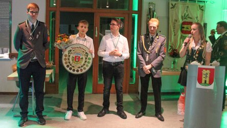 Doch wie es sich für einen Königsball gehört wurden natürlich auch die Gewinner des Pokalschießens durch die Jugend- und Schießsportleiter bekannt gegeben. Nach der Verleihung der Pokale und Scheiben warteten dann alle mit Spannung auf die Königsproklamation. Als erstes waren die Jungschützen an der Reihe. Prinz 2022 wurde Jonas Sottmann. Ihm zur Seite steht der Kronprinz Benedict Meier. Neuer Jugendkönig ist Nico Irrgang.